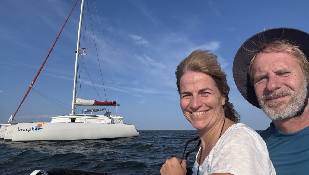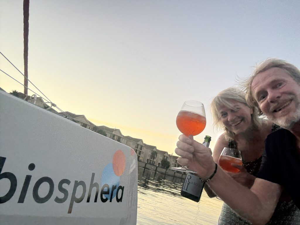 Zu zweit ist es auf der „biosphera“ sehr schön, jedoch ist das Nachtsegeln auch anstrengend,…