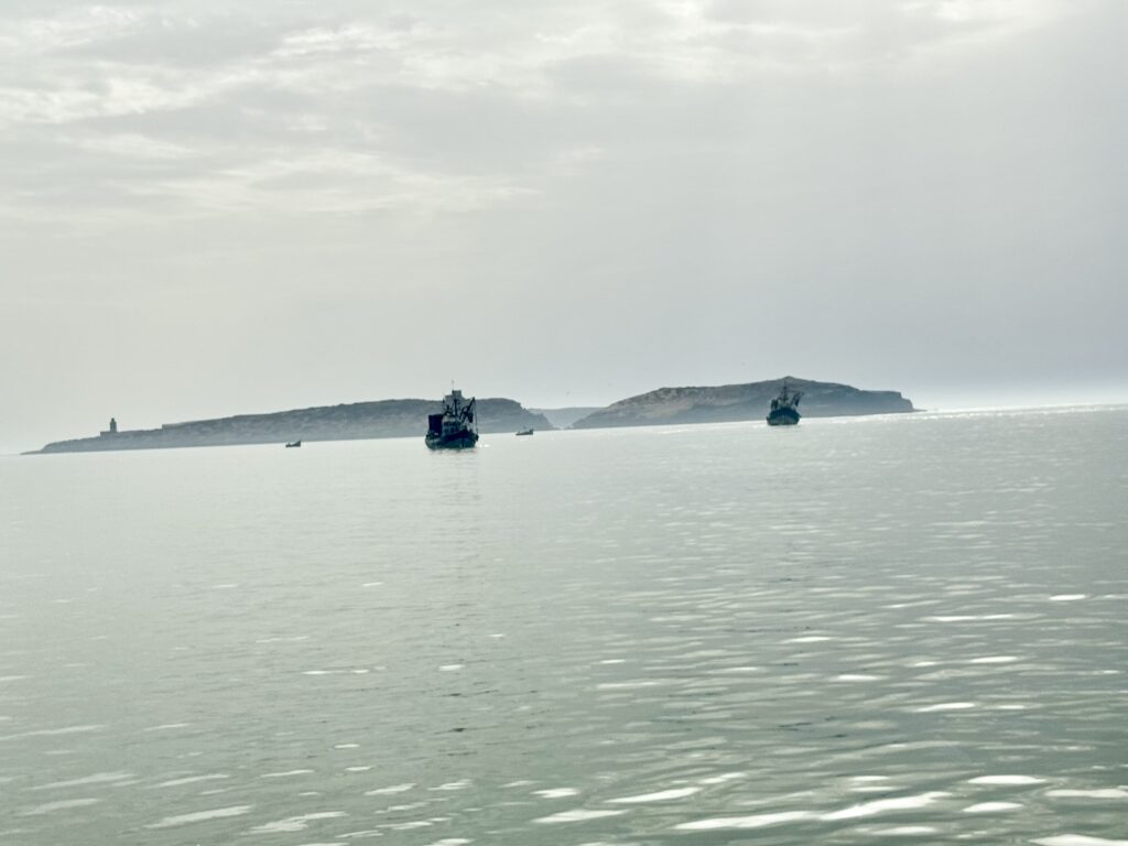 Es ist 07.30h und wir liegen in Essaouira vor Anker. Das glaube ich zumindest, sehen…