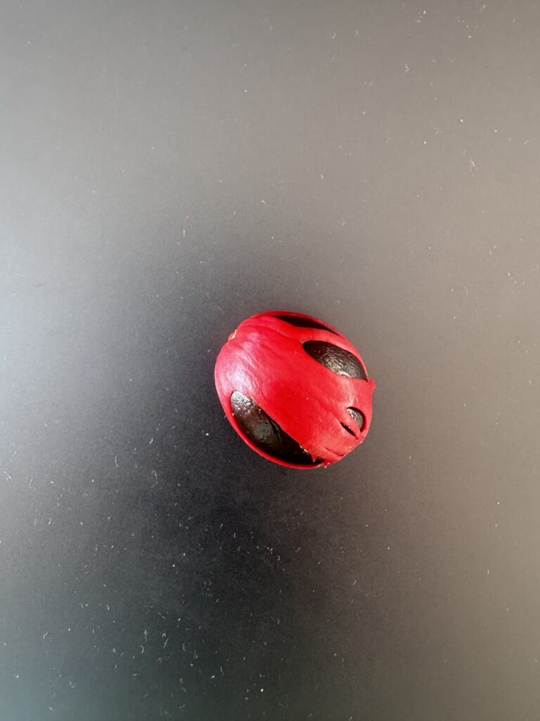 Die Früchte sind der Wahnsinn! Aus den Muskatnüssen würde ich sofort eine schöne Kette machen! Das Rot mit den Mustern ist geil! Könnt ihr mir nicht ein paar mitbringen ; ) ?
