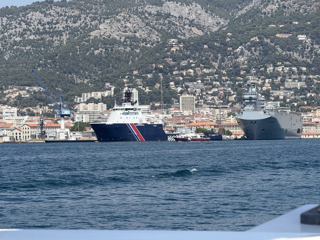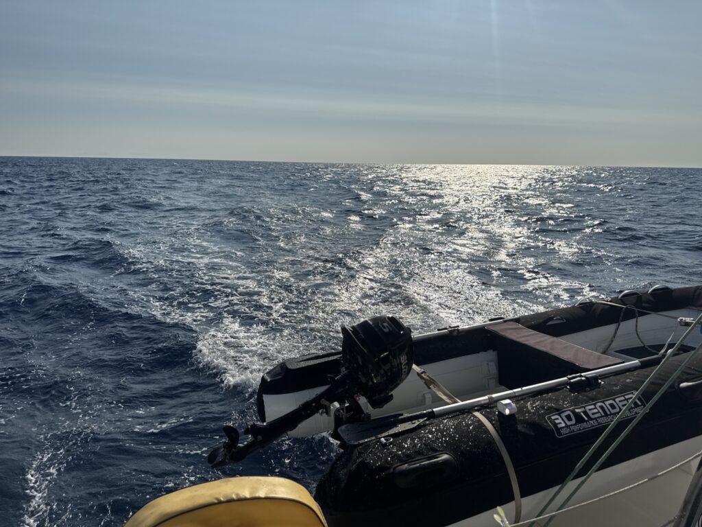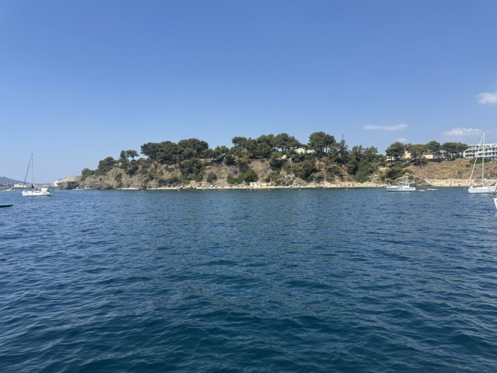 Nach dem schönen Feuerwerk in Toulon konnten wir nicht gleich weiter, da Sturm angesagt war für den langen Schlag. Wir nutzen die zwei Tage, um aufzuräumen, für kleinere Reparaturen und wir übten das Dingy vom Schiff runter und wieder rauf zu bekommen. Ein Dingy ist ein kleines Schlauchboot meist mit kleinem Außenborder, der uns von einer Ankerbucht aufs Festland bringt, also ziemlich wichtig 😊. Zudem verabschiedeten wir noch Enno, Martins Sohn, der einen Tag mit uns mitgesegelte, bevor er den VW Bus, der uns nach Cogolin brachte, wieder nach Berlin steuert. Es ist immer auch emotional die Kinder zu verabschieden.