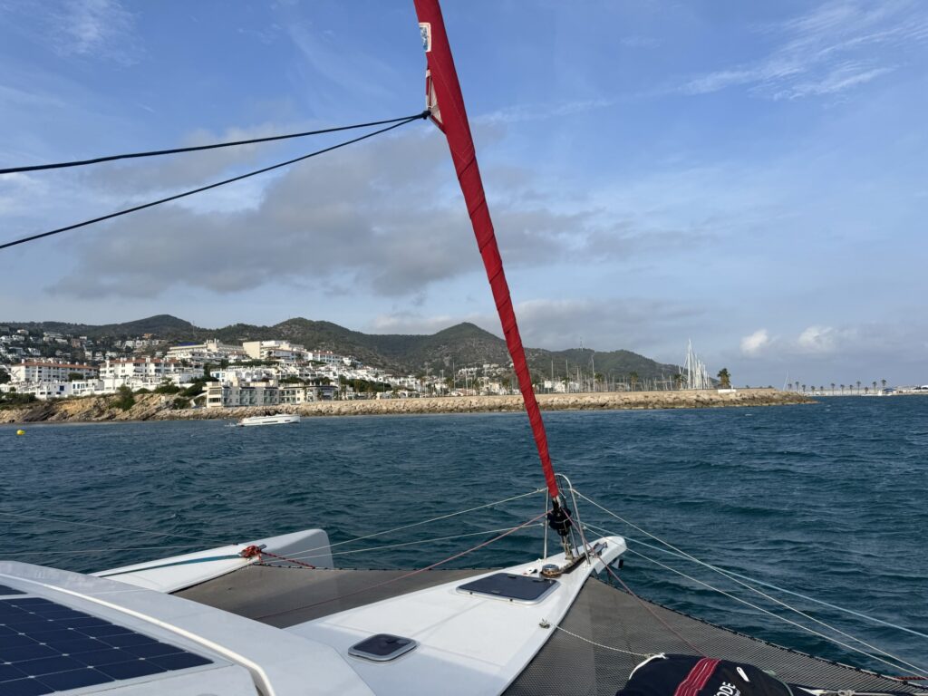 Seit 34 Stunden sind wir jetzt in Bewegung zu zweit. Für mich gerade der absolute Tiefpunkt. Gestern, den 19. August um 4.00 h früh klingelt der Handywecker und riss vor allem Martin aus dem Tiefschlaf. Wir wollten den Wind, der sich auf der Vorschau der App „Windguru“ zeigte, ausnutzen, um auf dem langen Schlag Richtung Barcelona möglichst viel zu segeln. Es ist stock dunkel der Mond ist noch nicht aufgegangen und nach einem starken Kaffee und etwas Müsli, lichten wir den Anker.