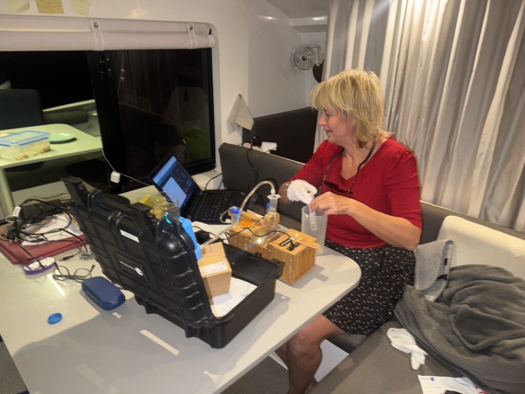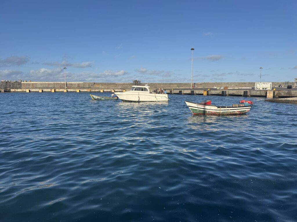 Im kleinen Hafen von Sant Filipe legen die Fähren an und auch Frachtschiffe! Dass haben wir mit erschrecken am ersten Samstagmorgen erfahren, als uns ein wildes lautes Tuten aus dem Schlaf riss. Wir ankerten mitten in der Hafenbucht, da eine große Welle im engen Hafen stand und der wilde Wind uns an den nahen Strand und die Felsen trieb. Wir wussten, dass die Fähre am Vormittag kommt und wollten vorher umparken, diese Aktion geschah nun in aller Eile am Morgen. Eigentlich gibt es nur Platz für ein Segelboot unserer Größe in der Hafenbucht. Das Boot muss mit Landleinen gesichert werden, damit es nicht am Strand auf Grund läuft oder sich mit Fischerbooten verhakt. Aber wir mussten es nicht alleine machen, da uns ein Einheimischer gegen Gebühr half. Gesichert mit Landleinen und starken Wind vom Land, sitzen wir nun mit Herculando und Vanessa an Bord der biosphera. Vanesse ist eine Mitarbeiterin von Vito, sie stammt auch aus Fogo und schreibt gerade an der Universität in Edinburgh ihre Doktorarbeit über die Meeresökologie von Fogo. Es gibt kaum Grundlageninformation über die Meeresökologie rund um Fogo, ihre Arbeit möchte dies ändern und sie strahlt, wenn sie von den vielfältigen Meeresbewohner erzählt, die sie rund um Fogo entdeckt. Vanessa und Herculando sind auch sehr interessiert an dem Planktoscope, dass ich seit Mindelo (Sao Vincente) mit im Gepäck habe. Mit einem Planctoscope, kann man die kleinsten Meeresbewohner (z.B. Urzeitkrebse) sichtbar machen. Das Plankton kann Aufschluss geben über die Qualität der Meeresökologie. Mit eingebauten Wlan, einer sehr guten Kamera und einer auf KI basierten Software, soll dieses Instrument geeignet sein, wissenschaftliche Daten zu sammeln. Bürgerwissenschaft oder citizen sciences, wird dieser Forschungsansatz genannt, bei dem Bürgerinnen und Bürger aktiv mit professionellen Wissenschaftlern zusammenarbeiten, um neues Wissen zu schaffen, indem sie Daten sammeln, Phänomene beobachten oder analysieren. In meinem Fall wollte ich dazu beitragen, indem ich Plankton mit dem Planktoscope sichtbar mache. Ich bin sehr glücklich, dass Vanessa und Herculando sehr viel besser mit dem“ FairScope“ (so der Name des Gerätes) arbeiten werden als ich. Das FairScope wurde von einer französischen Organisation produziert, die es ermöglicht zu geringen „Kosten“( so ein Gerät kostet etwa 6.000 Euro) auch kleineren Organisationen, die Analyse des Planktons zu ermöglichen. Ich hoffe sehr, dass das Biosphärenreservat vom Planktoscope profitiert.