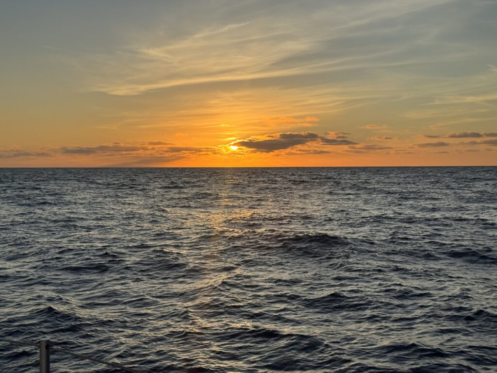 Hier an Bord der biosphera sind wir zwar nur zu zweit, aber wir sind aufeinander sehr angewiesen. Wir müssen kooperieren, um uns aufeinander verlassen zu können. Es war gut, dass ich den Frust gespürt habe, meine körperlichen Grenzen teste und dass wir auch immer das Feiern, was uns gut gelungen ist. Ich habe eingeführt, dass wir an jeden Abend teilen, wofür wir an diesem Tag dankbar sind! Das ist ein kleines Ritual, dass ich auch gern mit weiteren Besuchern der biosphera beibehalten möchte. Wenn man danach auch seine Sorgen teilt, dann bleibt dennoch auch die Reflektion auf das, was uns gefallen hat, aus dem wir schöpfen können. Manchmal sind es nur ganz kleine Dinge, ein Lächeln oder ein irrer Geschmack einer unbekannten Frucht. Ganz oft sind es auch die Tiere, die uns auf dieser Reise begegnet sind, wie Delphine, dies mit rasender Geschwindigkeit, mit uns mithalten und vor uns Kapriolen hüpfen. Ein kleiner Vogel, der sich auf einer Leine niederlässt und eine Weile unser Segelgast ist. Hiervon werde ich in Zukunft bestimmt noch häufiger berichten.