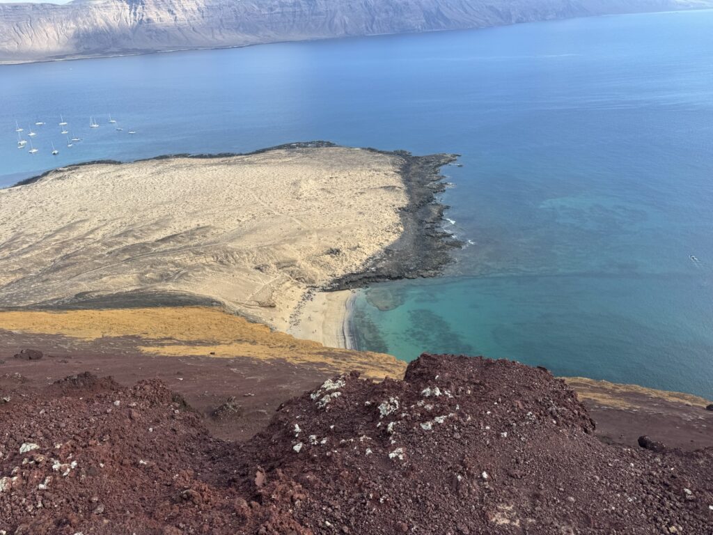 Nachts erreichten wir die Bucht von La Graciosa, der kleinen Insel vor Lanzarote. Am Tag konnten wir diesen magischen Ort mit den leuchten Farben von Ocker, Braun, Schwarz, Gelb und alles dazwischen bewundern. Mit uns teilten die Bucht bis zu 15 Segelboote, zwei davon waren ebenfalls eine „Neel 42“, also die gleiche Bauart, wie die unsere. Was für ein Zufall, denn so viele Neels gibt es nicht. Gesegelt wurden sie jeweils von französischen Familien mit zwei und drei kleinen Kindern, die die gleiche Strecke bewältigen wie wir. Das war eine nette Begegnung, seit diesem Augenblick halten wir Kontakt und tauschen uns über verschiedene Informationen aus. Wie sind alle begeistert von der Neel und ihren Segeleigenschaften. Soweit so gut und wie kam es dann, dass ich zwischen diesem Zeitpunkt und heute so angestrengt war?