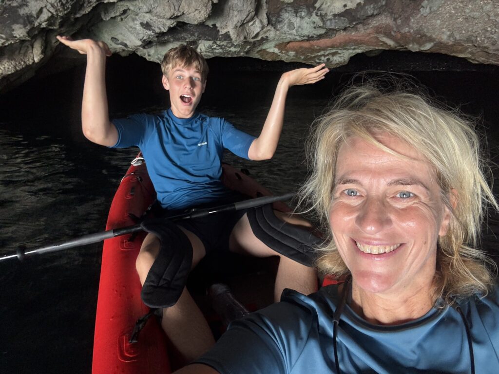 In all der angespannten Stimmung haben wir auch wundervolle Momente gezaubert. Durch den Besuch von Martins Söhnen, waren wir ausführlich tauchen und schnorcheln. Besonders beliebt war mein Lieblingsspielzeug ein aufblasbares Kajak in einer Bucht nördlich von Santa Cruz (Teneriffa). Hiermit studierten wir das Innenleben von verschiedenen Höhlen, was ein wenig unheimlich war.